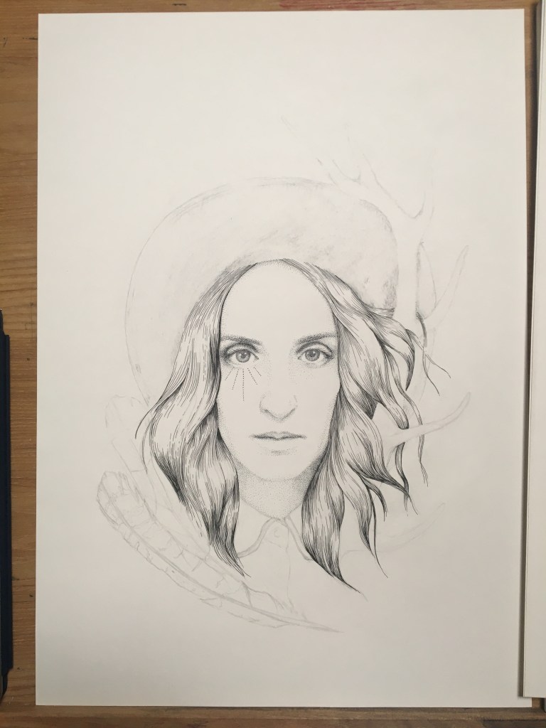 I’ve just finished an ink and collage portrait for Vikki. I’m so glad it’s in the hands of its subject now and well received.