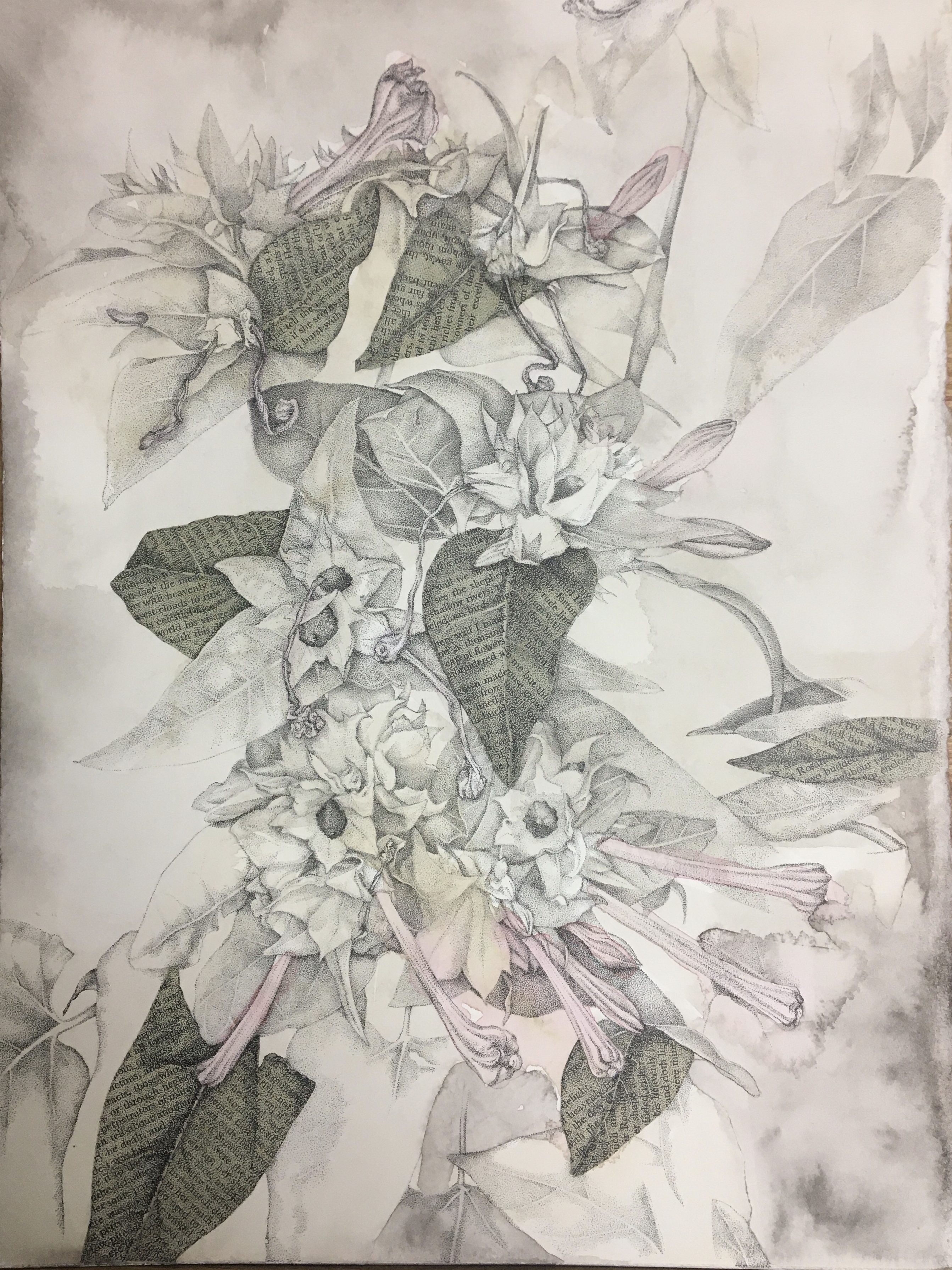 and then following on from these are two pieces drawn from the flower ‘Four O’clocks’